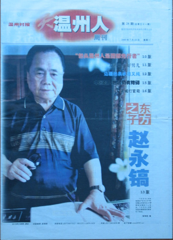 中央电视台新闻联播“东方之子”专栏播出了“化工专家赵永镐的先进事迹”,在温州引起了轰动。温州媒体纷纷进行报道,《温州时报》还整版报道了“东方之子”:化工专家赵永镐的先进事迹,并且发布了赵永镐的大幅照片。