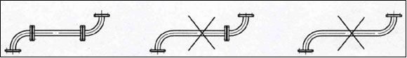 (2)管系应由直管段与单独的弯头、三通、四通和异径管所组成。如下图所示:
