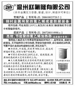 地址:浙江省温州市瓯海三溪工业园康宏西路21号     邮编:325016      网址:http://www.zhaoflon.com.cn